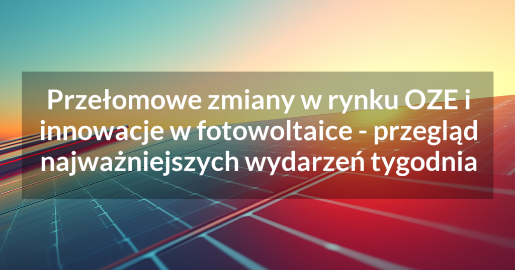 Przełomowe zmiany w rynku OZE i innowacje w fotowoltaice – przegląd najważniejszych wydarzeń tygodnia