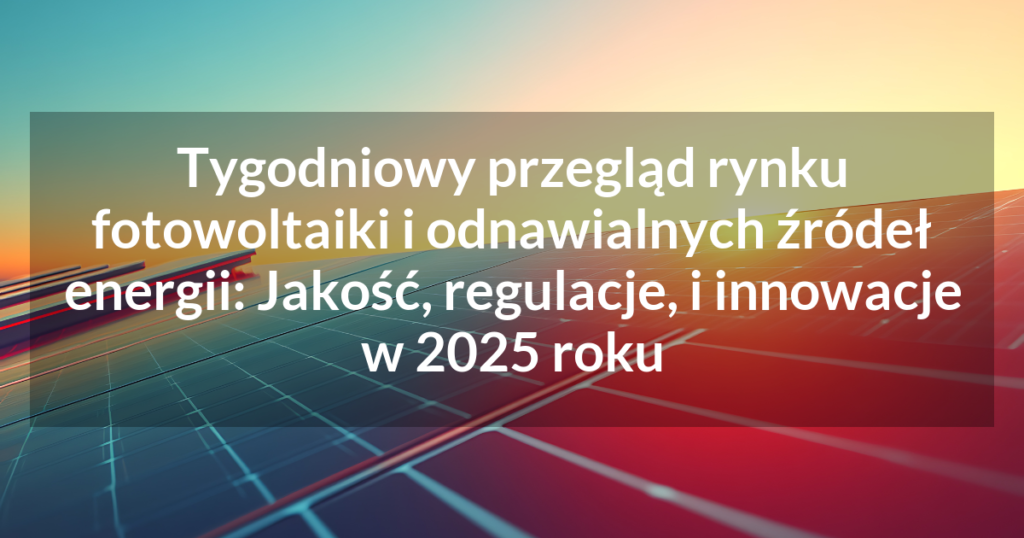 Tygodniowy przegląd rynku fotowoltaiki i odnawialnych źródeł energii: Jakość, regulacje, i innowacje w 2025 roku